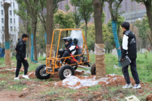 两队在车间相互交流讨论后,还一起进行了实地越野驾驶。武汉理工巴哈越野车队队员赞赏了我们车队自制的赛车,分享了驾驶感受,提了宝贵的意见。
